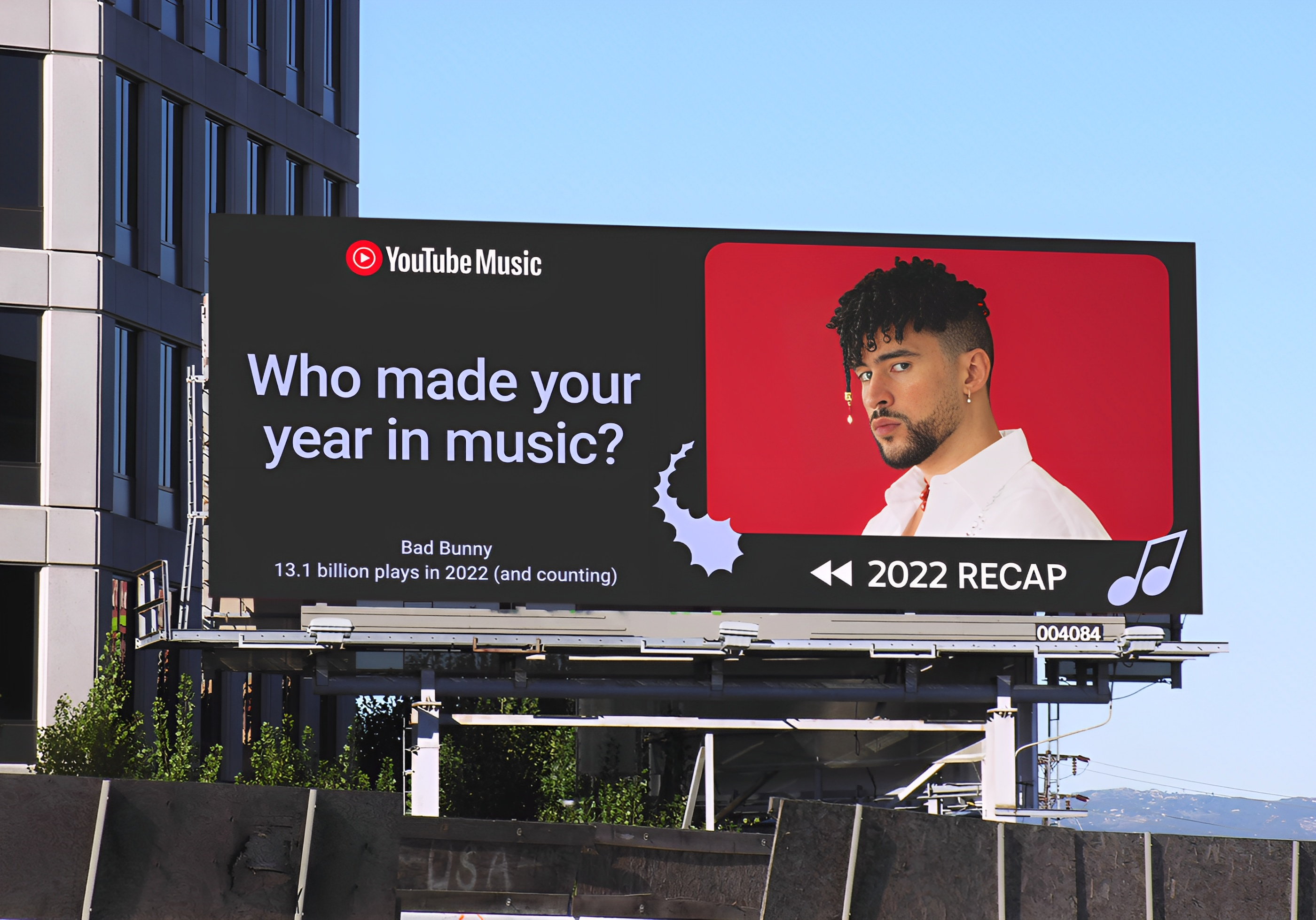 Recap is an annual year-end report that provides users with a compilation of data regarding their activity on the YouTube Music app throughout the year. Our team developed the brand identity for Recap 2022. We collaborated with illustrator Benedikt Luft to create a unique concept and striking visuals. In order to capture the attention of Gen Z, we used bright and bold neon colors throughout the design. The key-visuals were used in playlist art across YouTube and YouTube Music, event design for YouTube Shorts and billboards across the United States, in Nashville, Miami, Atlanta, Los Angeles and New York.